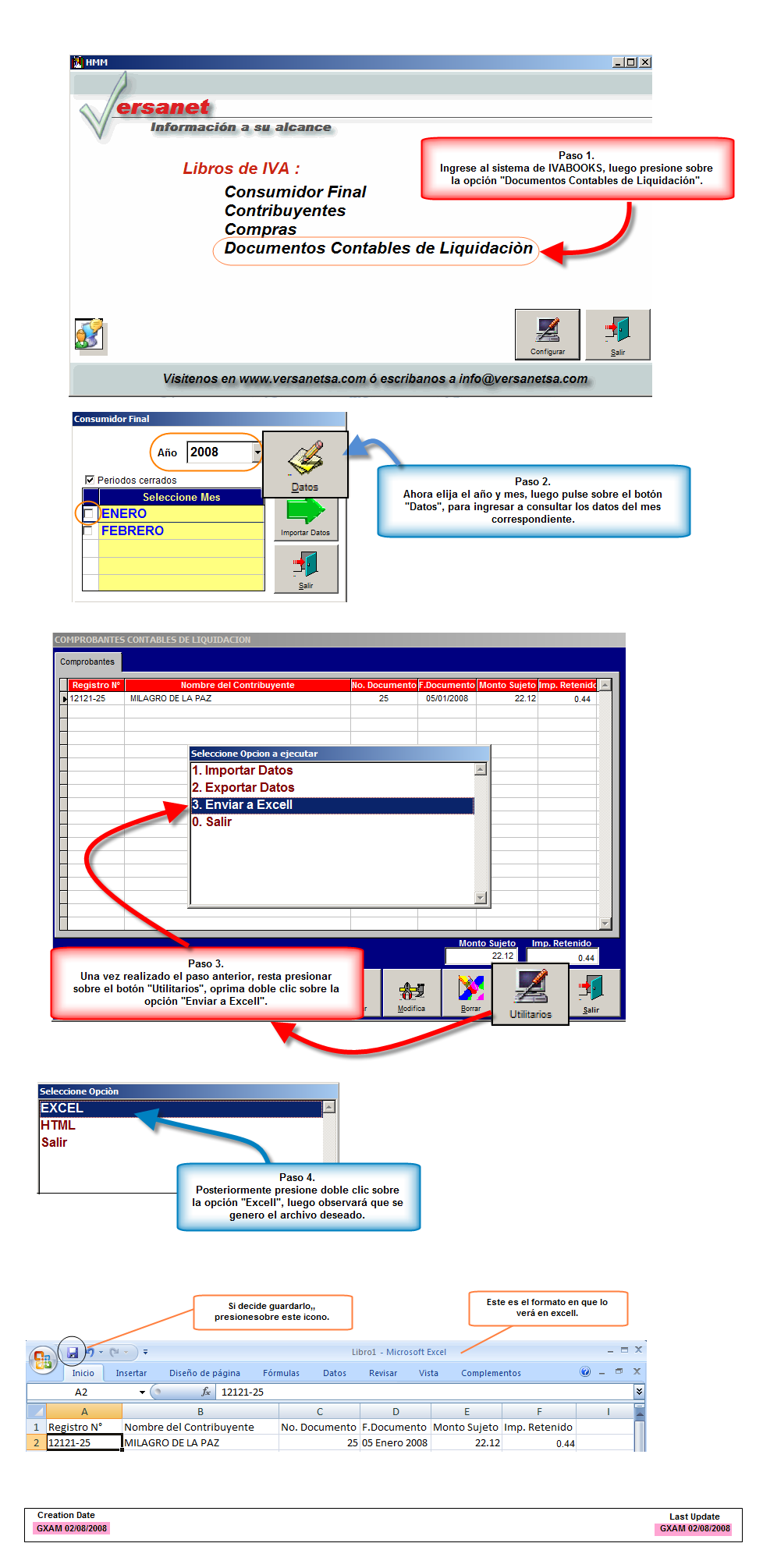 Como nuevo usuario del sistema, se habrá preguntado ¿como generar comprobantes de liquidación a excell?, bien la respuesta es que el sistema le permite por medio de la opción UTILITARIOS realizar este tipo de exportación y no sólo para este tipo de comprobantes sino para cada uno de los demás documentos.