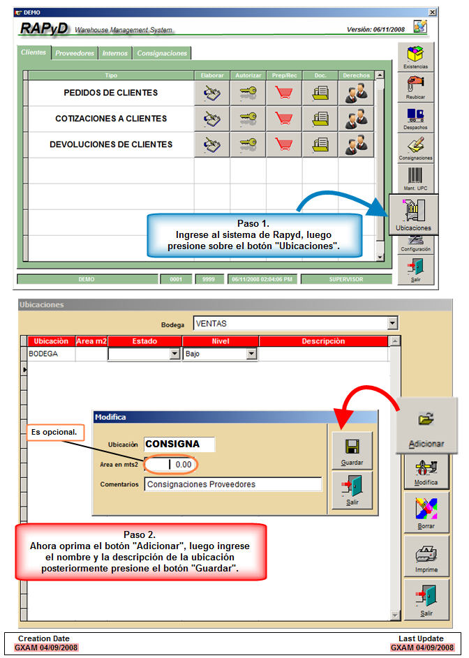 Son las áreas que se utilizan para especificar donde se encuentra o se ubicará el producto dentro del centro de Distribución, permitiéndole ordenar la mercadería y el inventario.