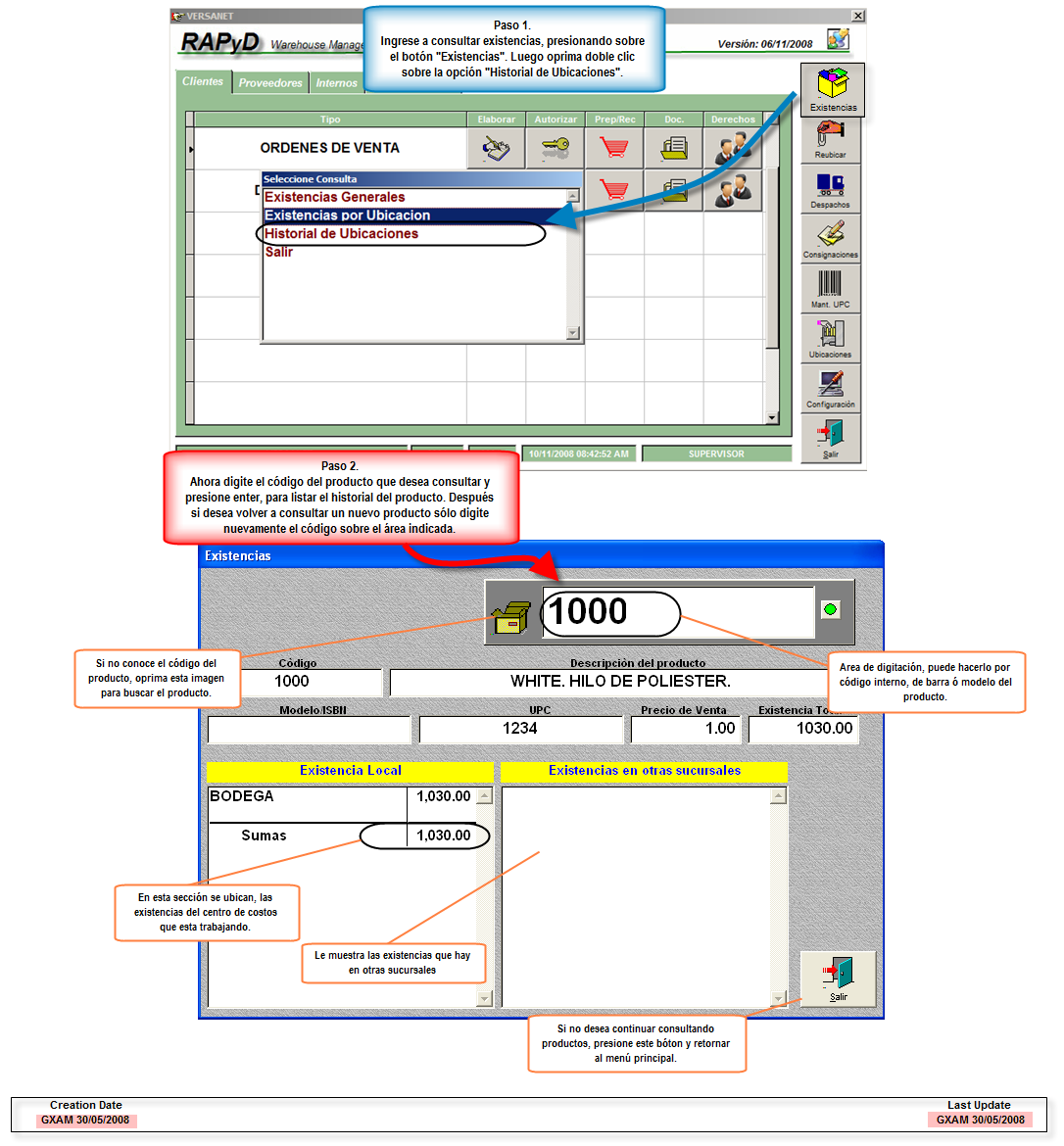 Podrá obtener una consulta detallada por cada producto, sólo necesita digitar el código o más bien buscar el producto en el maestro de productos, dicha consulta le permite monitorear las existencias con las que cuenta en su centro de costos como en otras sucursales.