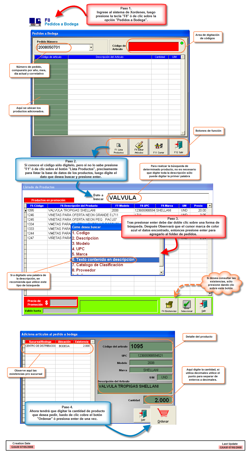 Aqui debe ingresar todo aquel producto que necesita para la venta, para explicar mejor el proceso se ha dividido en dos secciones, a continuación se muestran los pasos para elaborar un pedido, veamos: