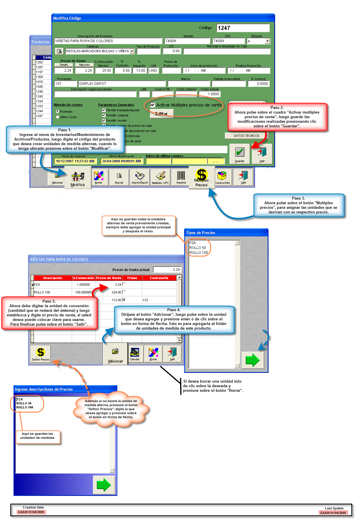 Existen varios productos que se pueden vender en diferentes tipos de unidades. Por ejemplo un quintal de hierro lo puede vender por varilla ó por 1/2" QQ.