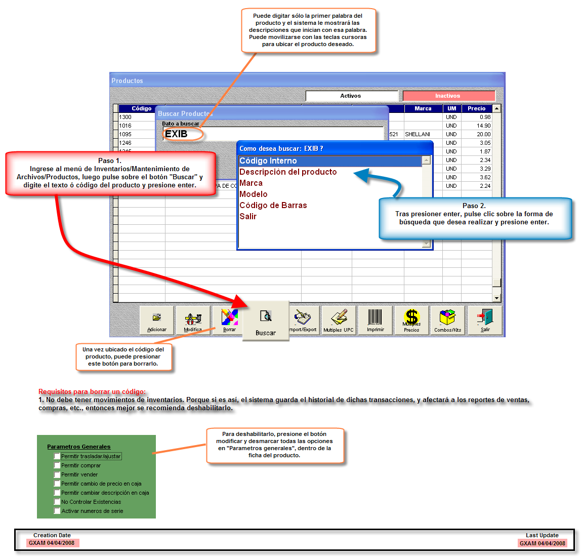 Recuerde que cada vez que desee borrar alguno no debe tener historial de inventario.