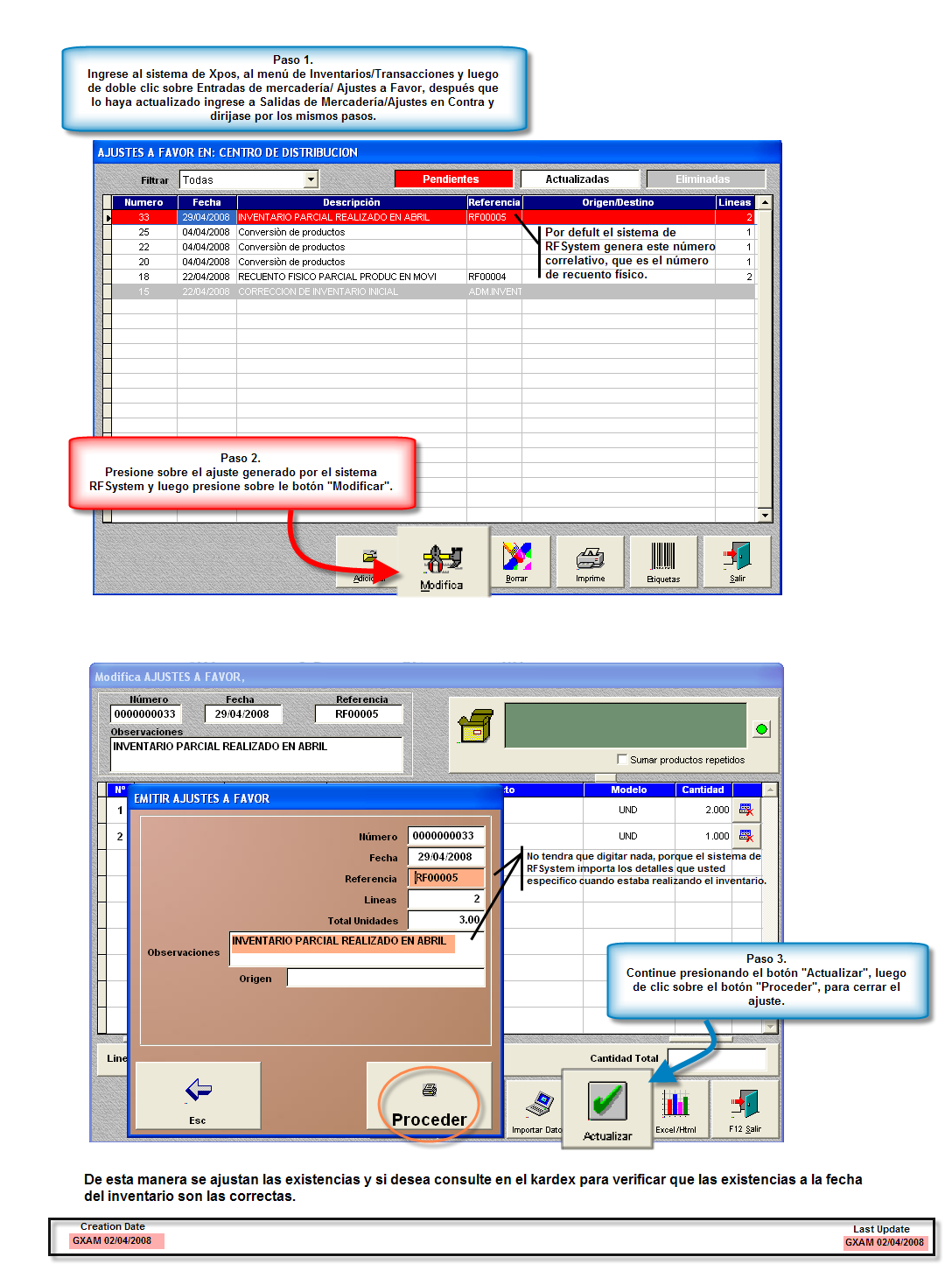 Recuerde que hasta que actualice dichos ajustes ó facture los faltantes podrá actualizar su inventario.