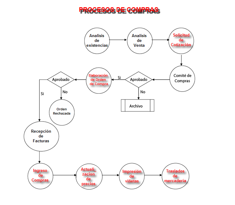 El proceso de compras es un proceso muy complicado porque implica dividir cada proceso en sub-procesos, con el fin de comprar lo que realmente se necesita y no tener mercadería estancada o dinero invertido.