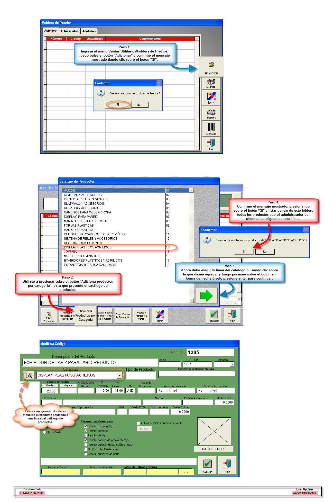 La opción de Folders de Precios, le permite además de modificar los precios por proveedor también por una línea especifica del catálogo de productos. Al igual que los productos deben estar asignados a un proveedor también debe estar asignado a una línea del catálogo de productos.