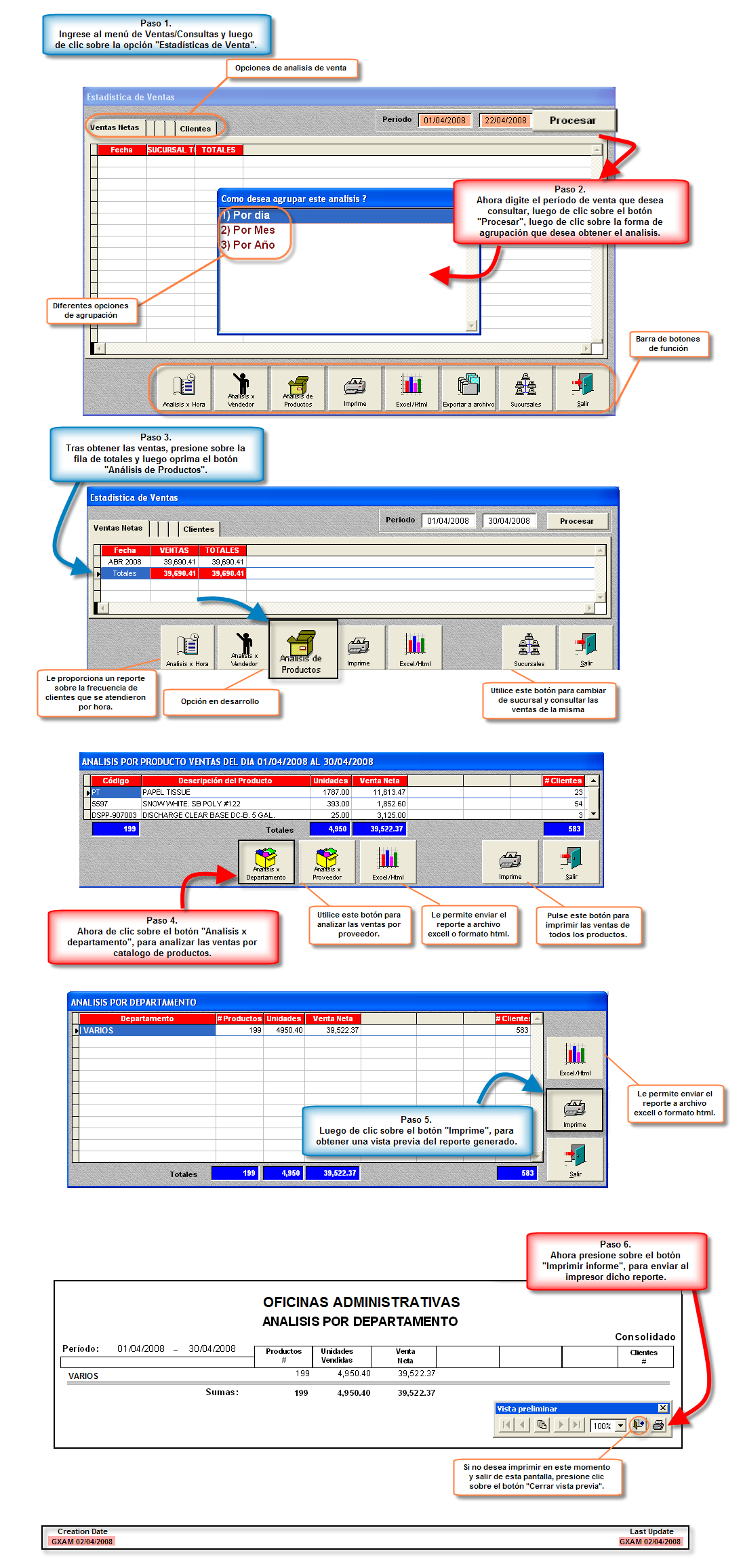 "Estadística de ventas", es un reporte global de ventas por día, mes y año en un periodo de fechas, podemos también verificar el total de artículos vendidos y la utilidad generada .
