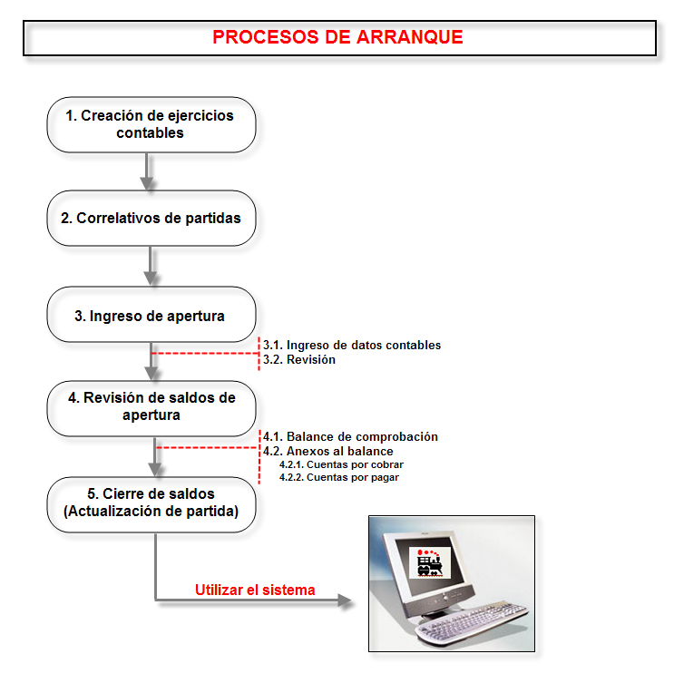 Toda implementación sistemática requiere procesos de inicialización para utilizar el sistema de contabilidad, a continuación se explican detalladamente los primeros pasos que debe realizar para comenzar a utilizar el sistema.