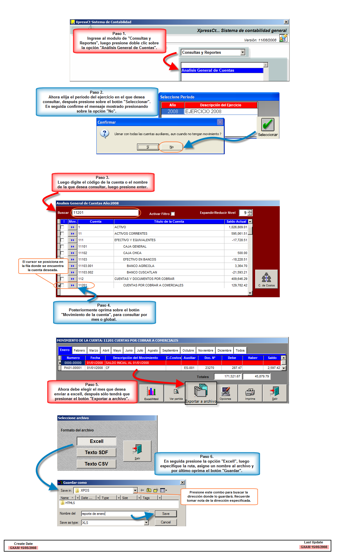 El sistema ofrece además de la impresión de reportes, la exportación de datos a excell u otros formatos para posteriores análisis o más bien para poder enviarlos como archivos adjuntos via correo electrónico.