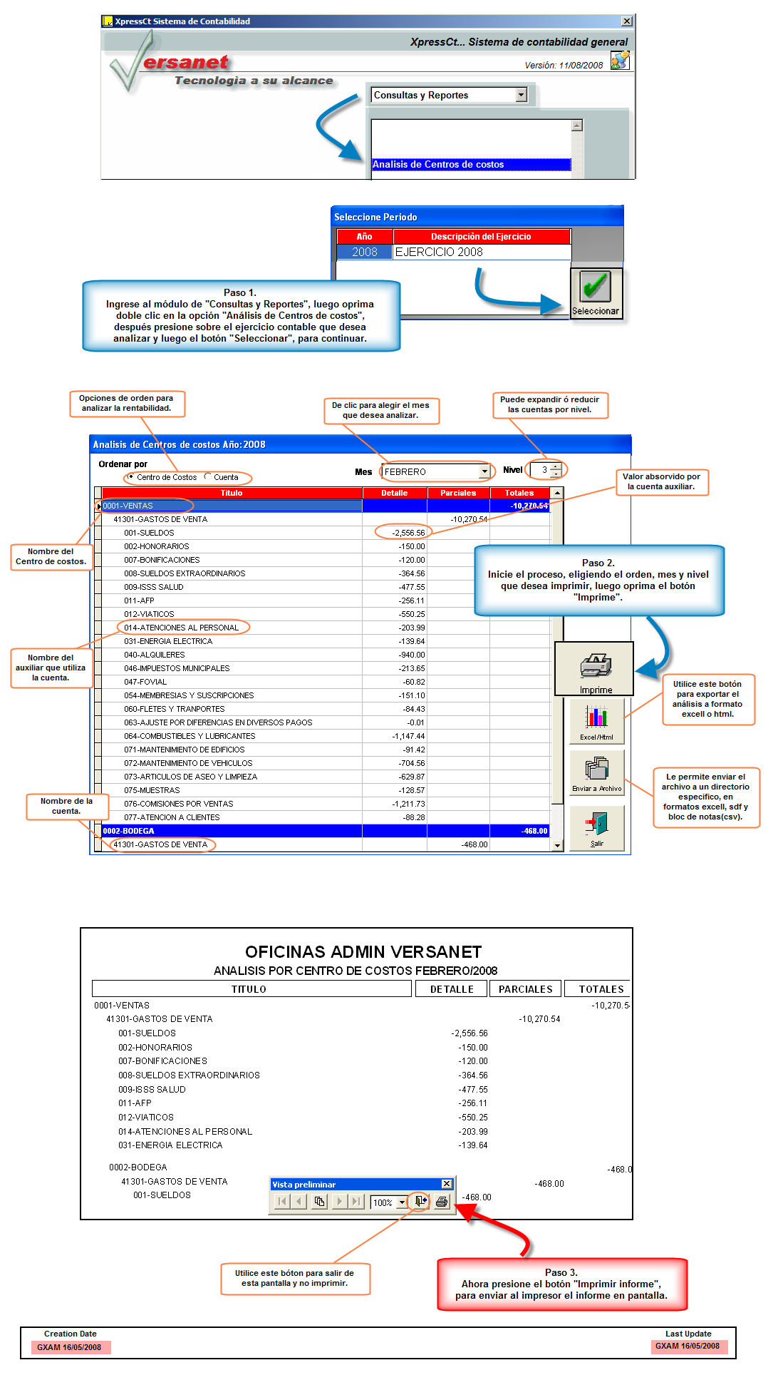 Este reporte genera información útil para el anásis de la rentabilidad de cada centro de costos. Al mimos tiempo puede obtenerlo de manera detallada, marcando la casilla "Centro de costos", que presenta un reporte ordenado por cada sucursal o centro de costos y por "Cuenta", muestra un consolidado de todas las cuentas pero en orden en base a cuentas.