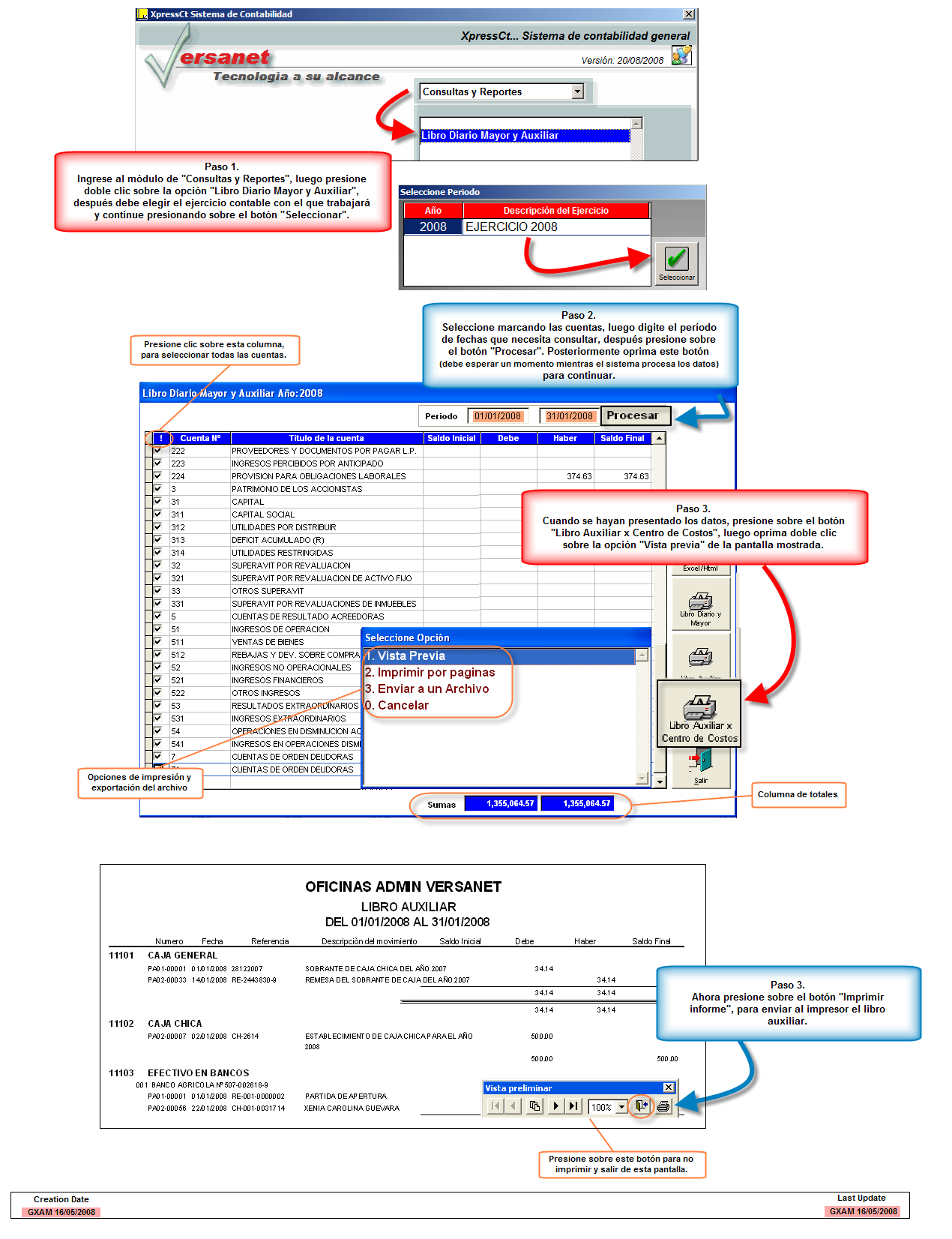 Le muestra un informe de los movimientos contables por cada uno de los centros de costos, podrá imprimirlo, realizar vista previa o enviar a archivo los datos.
